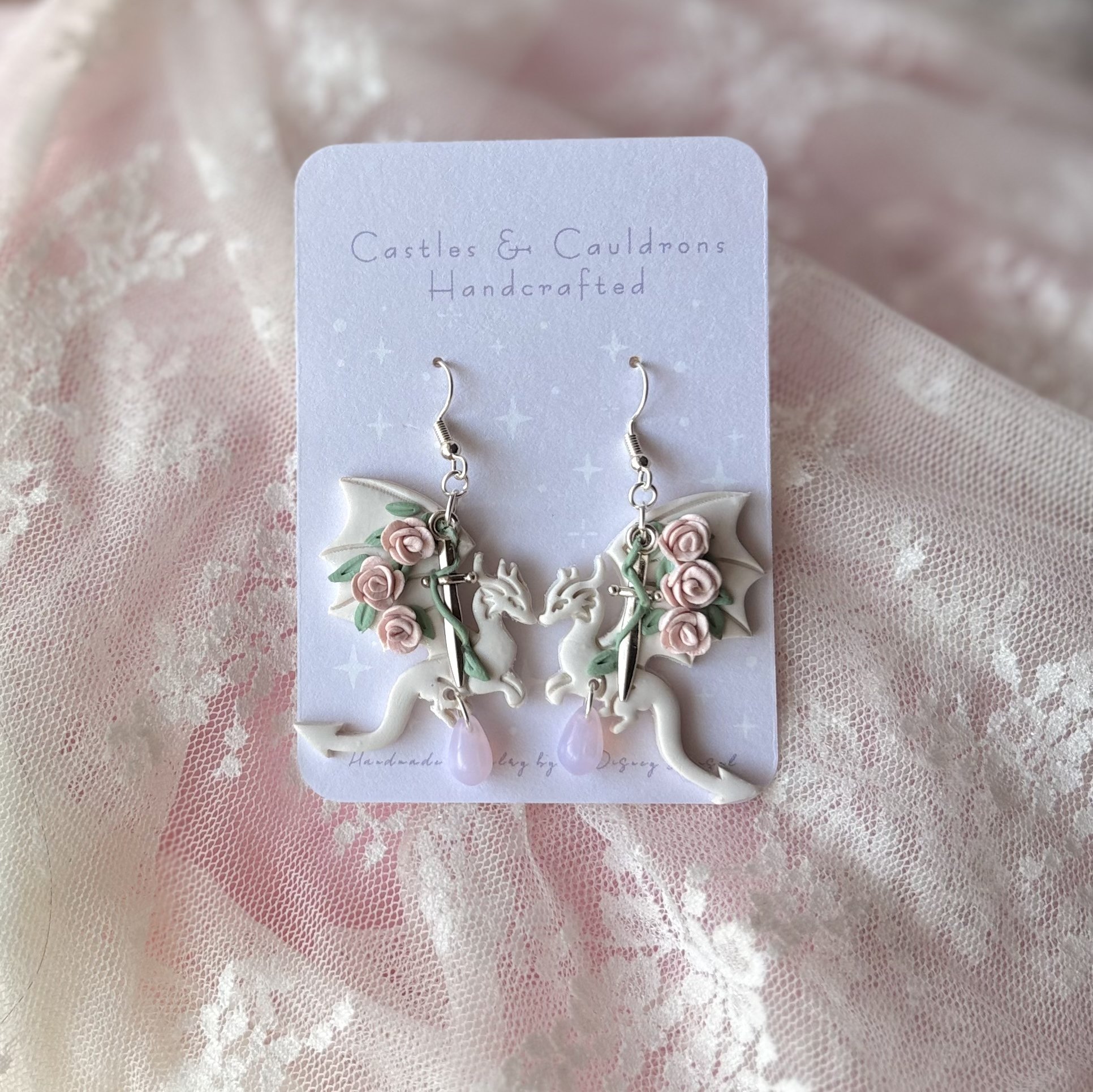 Castles & Cauldrons Handcrafted › Romantasy Dragons - Pearl & Pink Image 1 of 1 Romantasy Dragons - Pearl & Pink $35.00 Add To Cart Added!